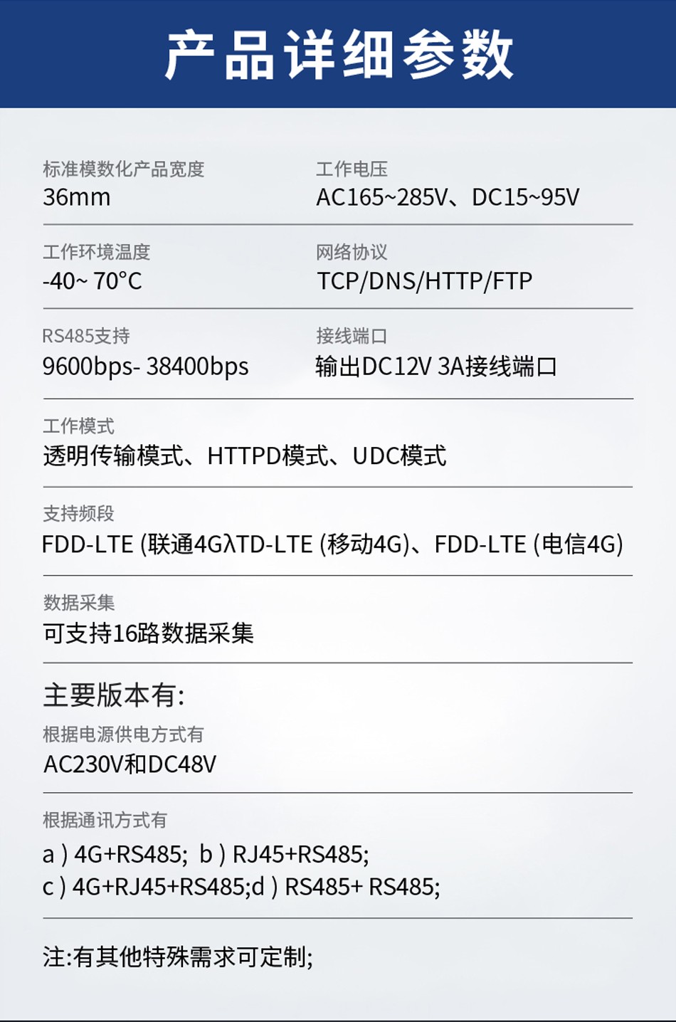 4G+RS485、RJ45+RS485、4G+RJ45+RS485、RS485+RS485